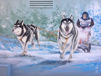 Die heimlichen Wahrzeichen von Muldenhammer, Rennschlitten und Huskys, zieren ab sofort die Trafostation.
