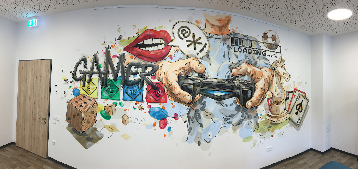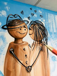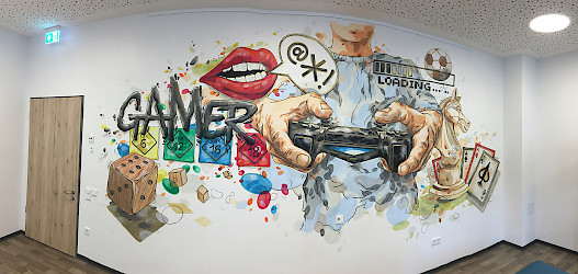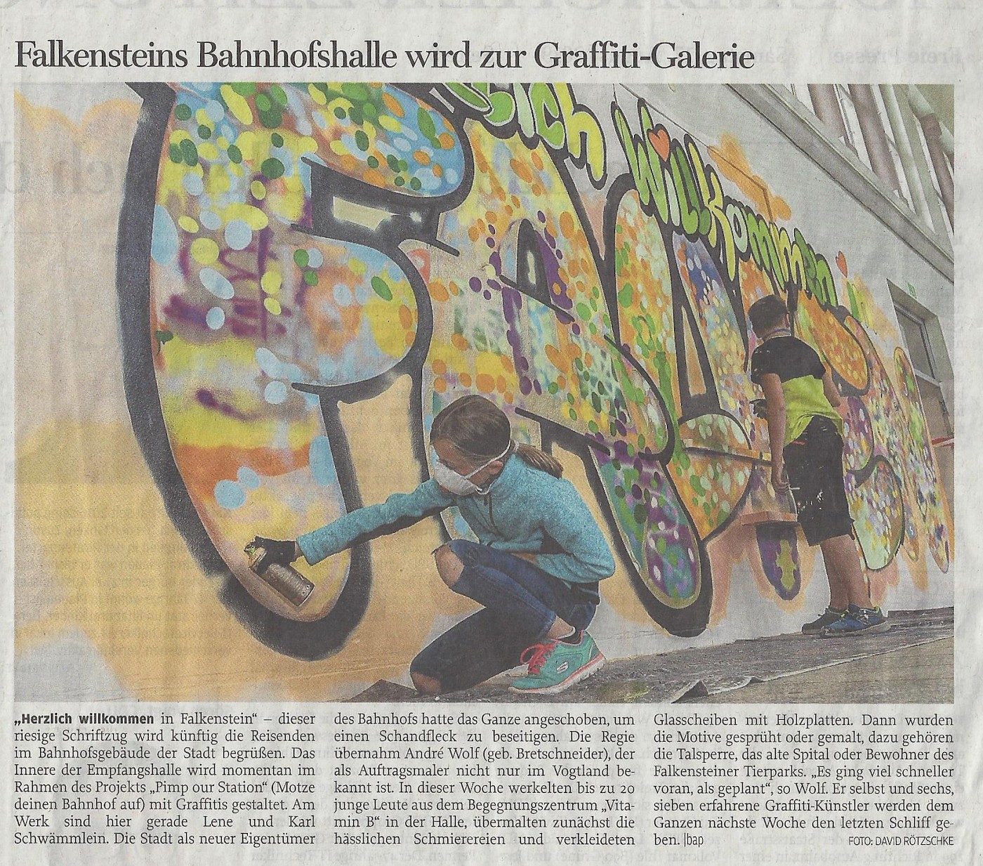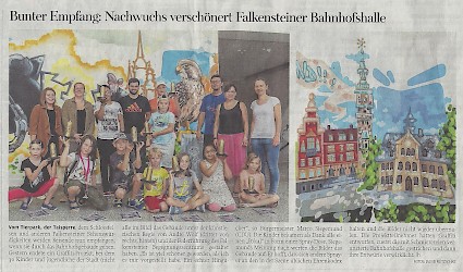 Zusammen mit anderen Künstlern und dem Jugenzentrum Falkenstein wurde die Bahnhofshalle neu gestaltet.