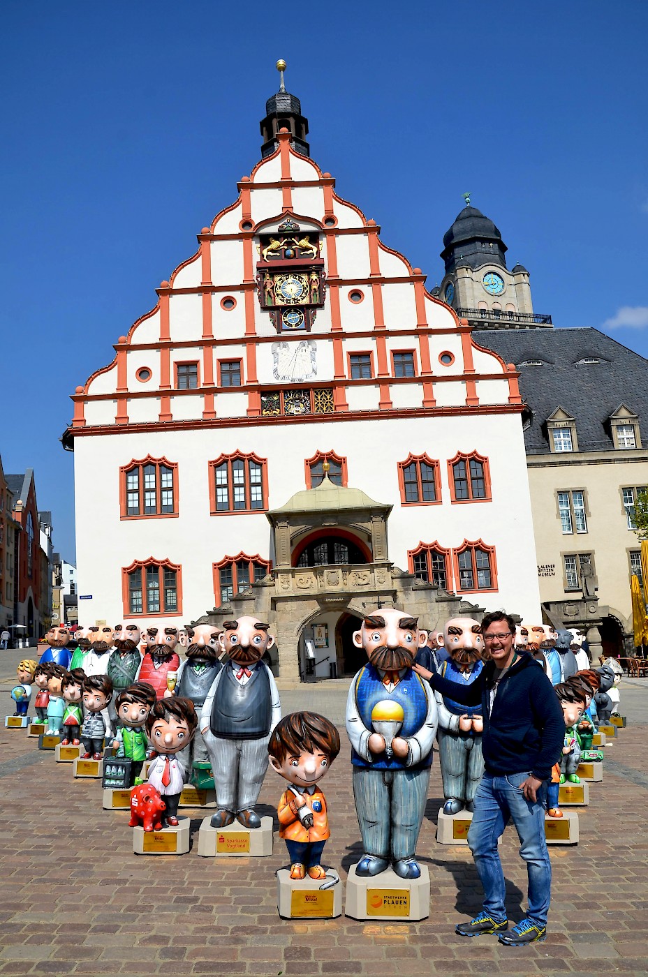 Im Frühjahr 2019 entstanden 10 Vater und Sohn Paare, welche nach Wünschen der Auftraggeber mit Pinsel und Farbe gestaltet wurden. Sie zieren nun das Plauener Stadtzentrum entlang der Bahnhofstraße.