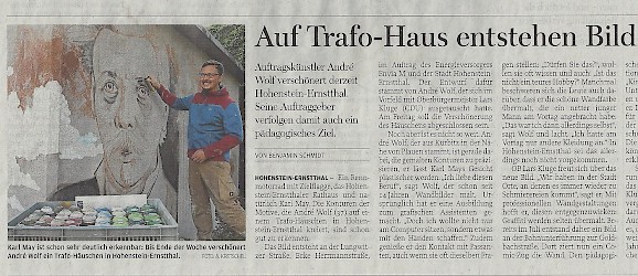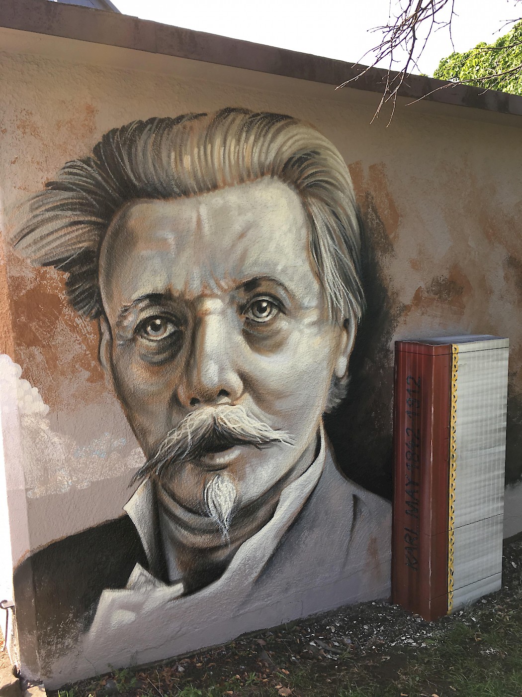 Ein großes Karl May Portrait ist auf der Trafostation im Erzgebirgskreis entstanden.