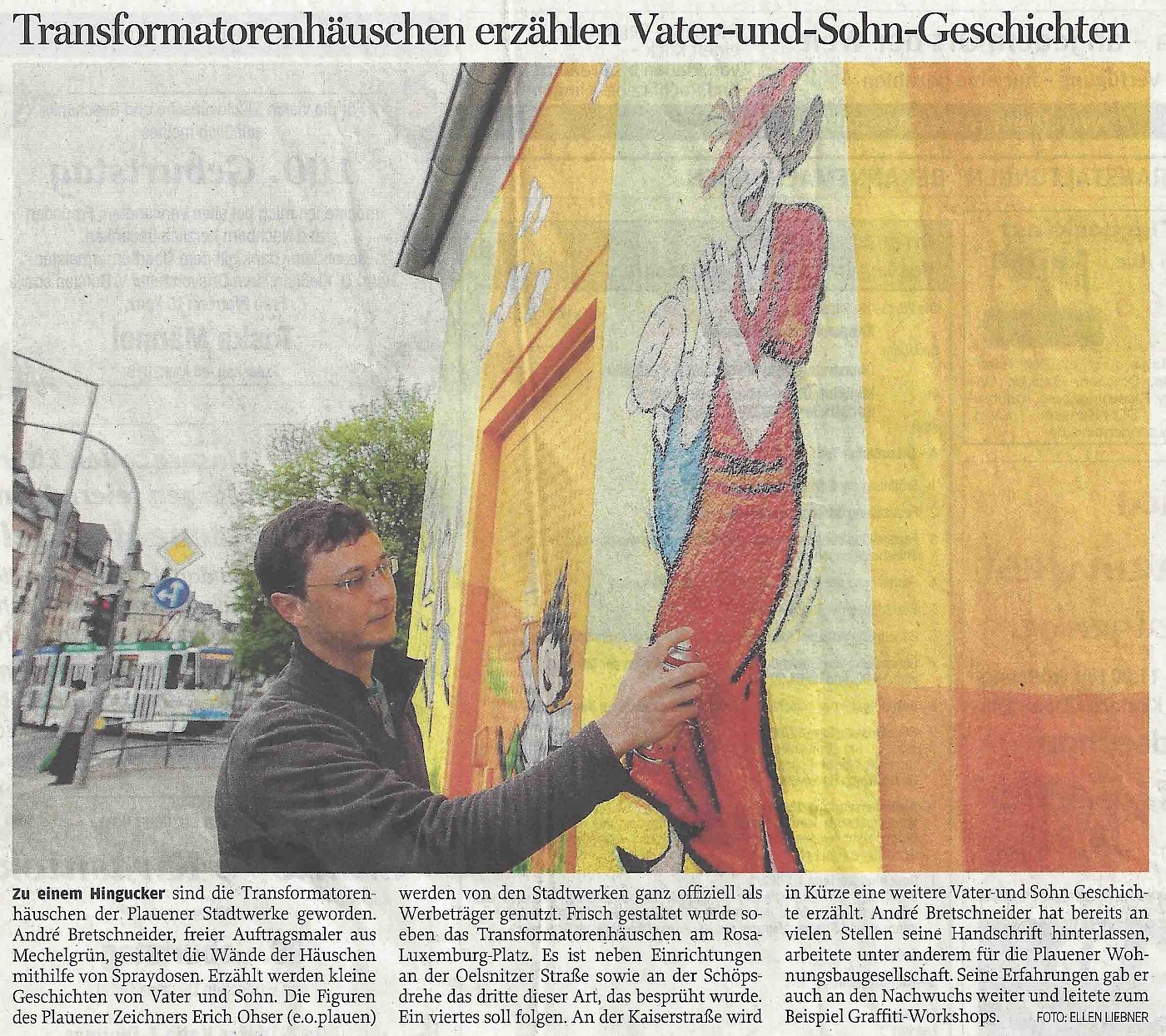 Trafostationen in Plauen erzählen Geschichten von "Vater und Sohn", auch die Presse berichtet darüber. Hier finden Sie weitere Bilder auf der Projektseite.