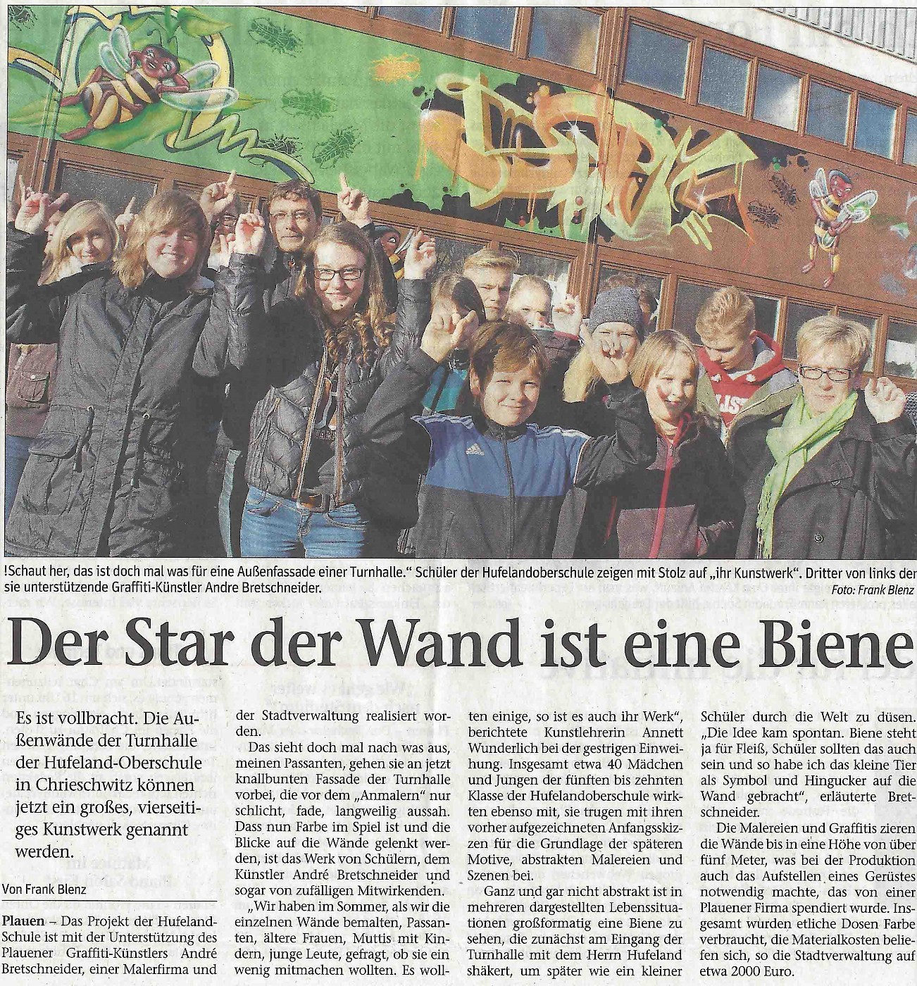 Zusammen mit anderen Sprayern der Region wurde die Gestaltung der Turnhalle realisert.