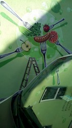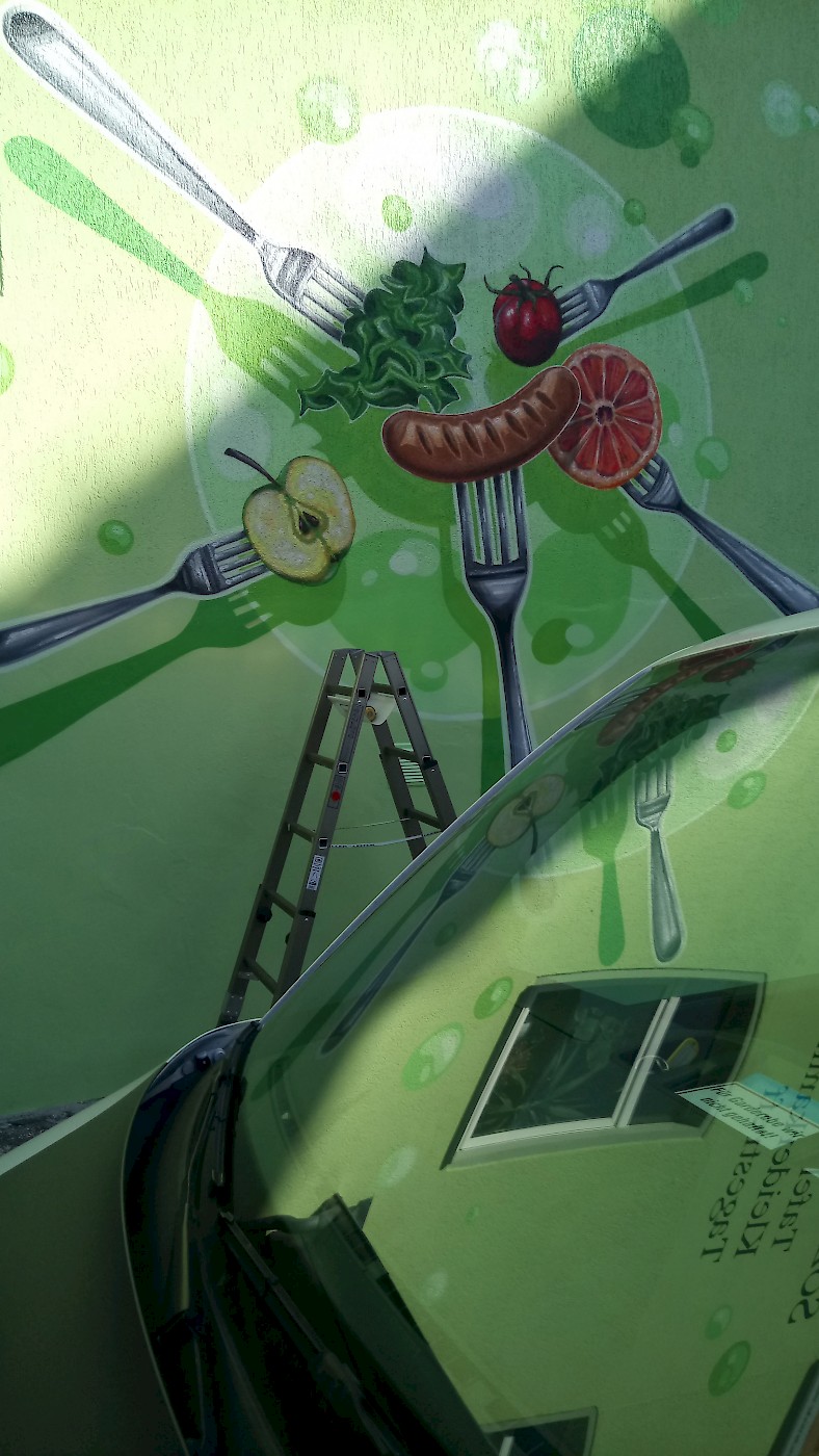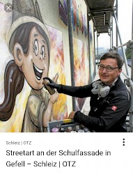 Zusammen mit anderen Künstlern und dem Jugenzentrum Falkenstein wurde die Bahnhofshalle neu gestaltet.