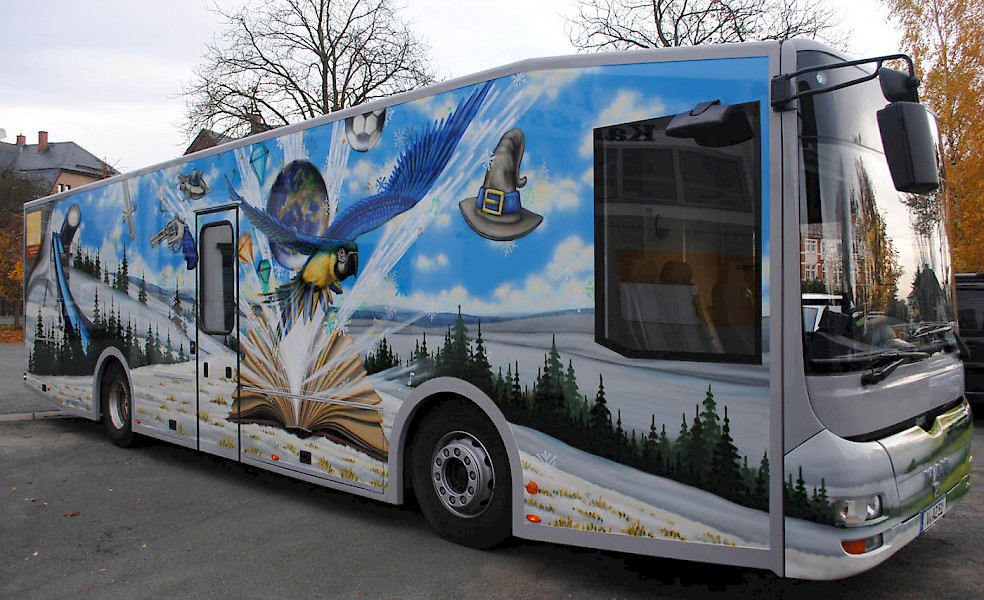 Komplette Busgestaltung für die Fahrbibliothek Vogtland.
