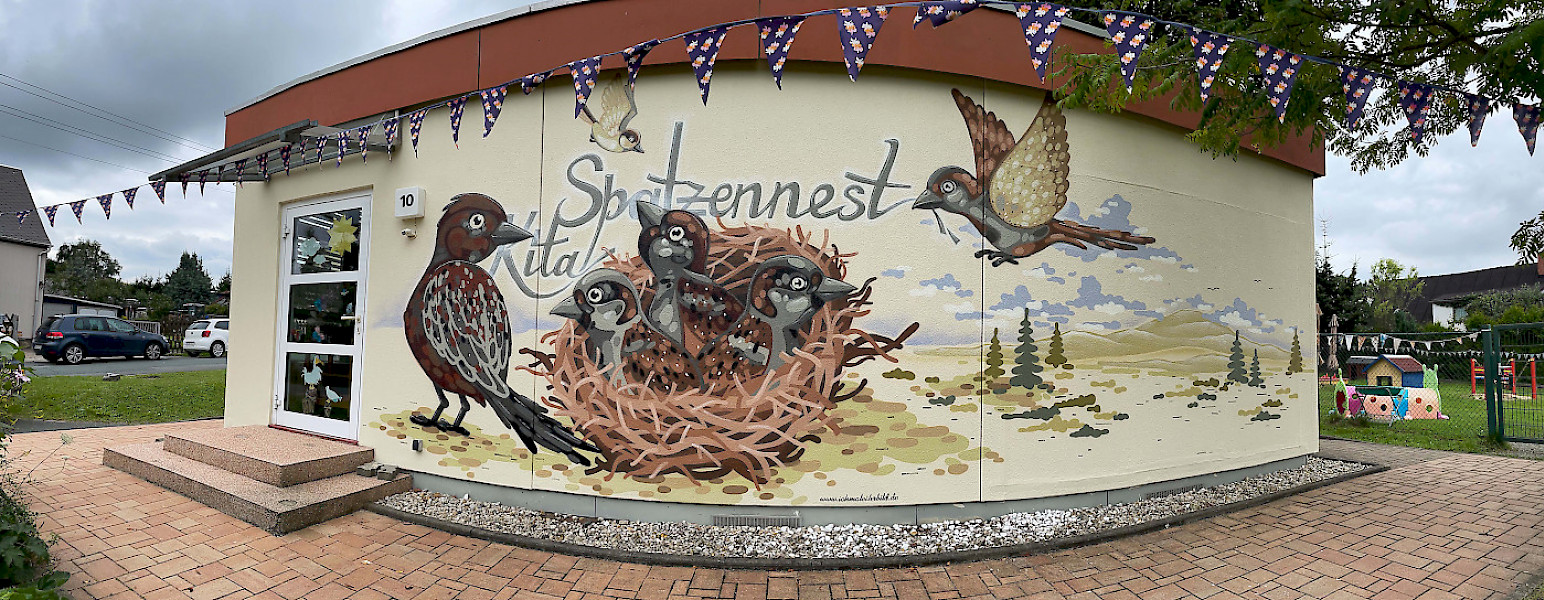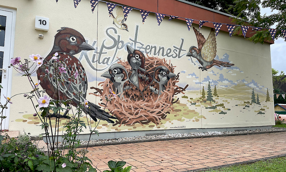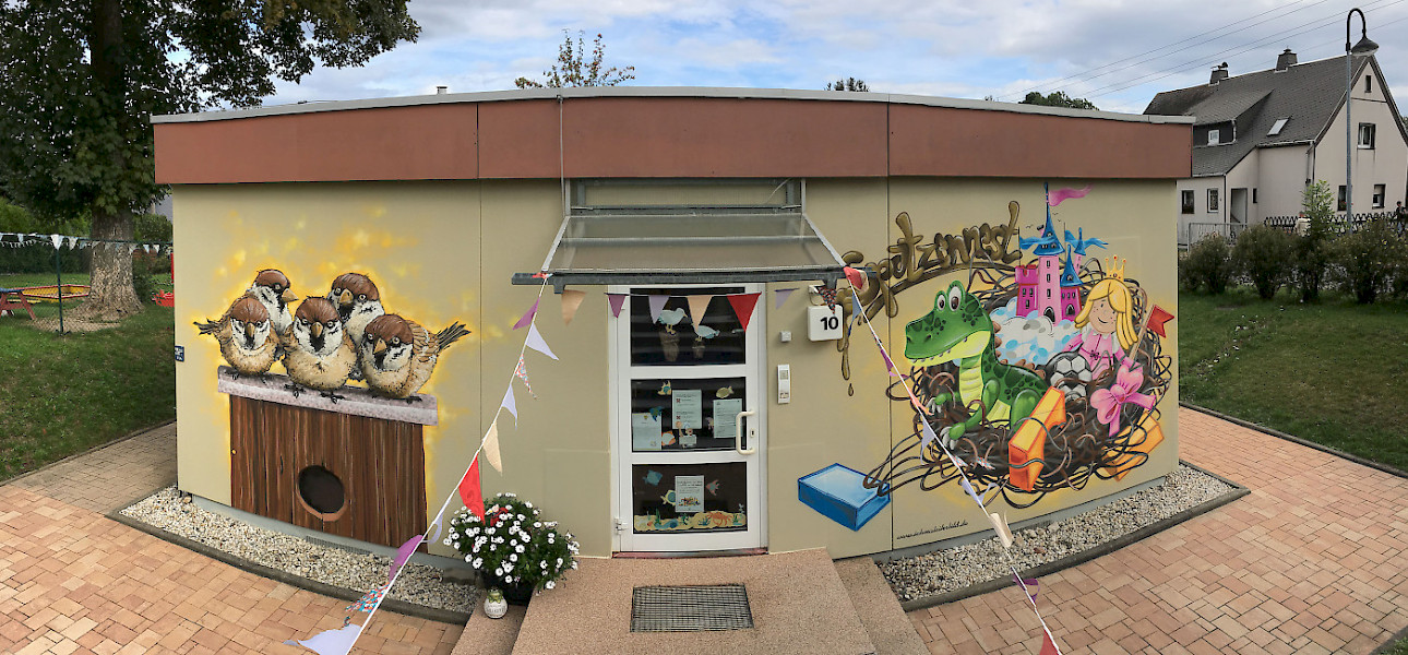 Freundlich leuchtende Farbtupfer lassen die Fassaden der Kindertagesstätten erstrahlen.