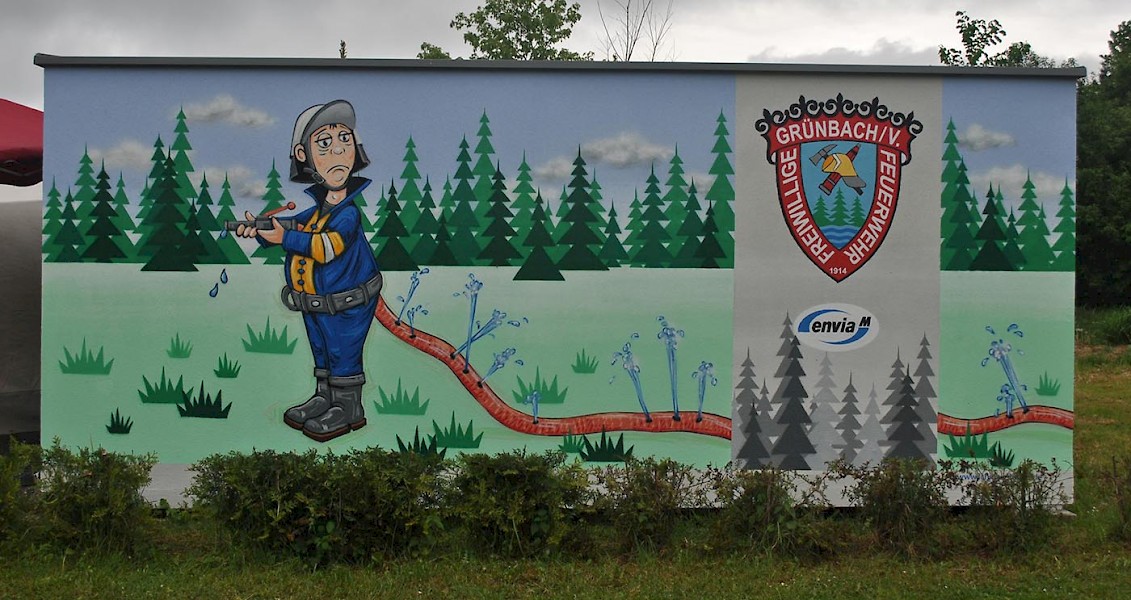 "Wasser Marsch": Garagengestaltung für die Freiwillige Feuerwehr Grünbach.