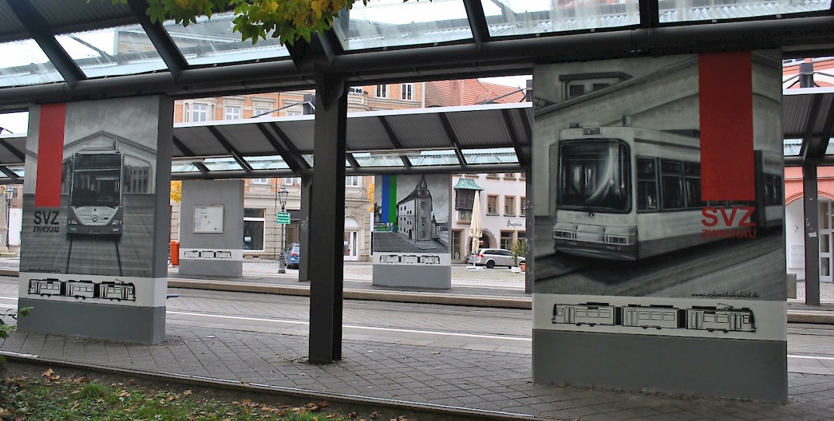 Gestaltung von Straßenbahnhaltestationen für die SVZ.