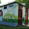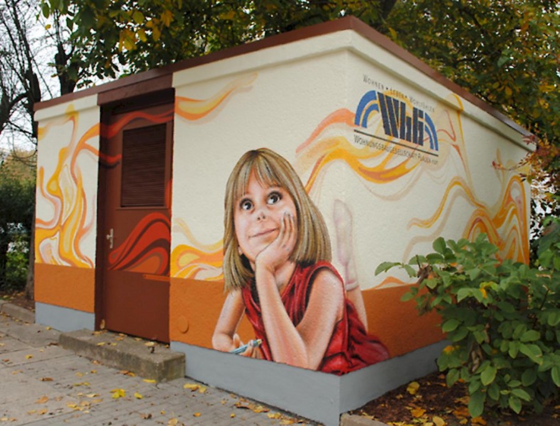 Verschiedene Stromhäuschen mit Familienmotiven.