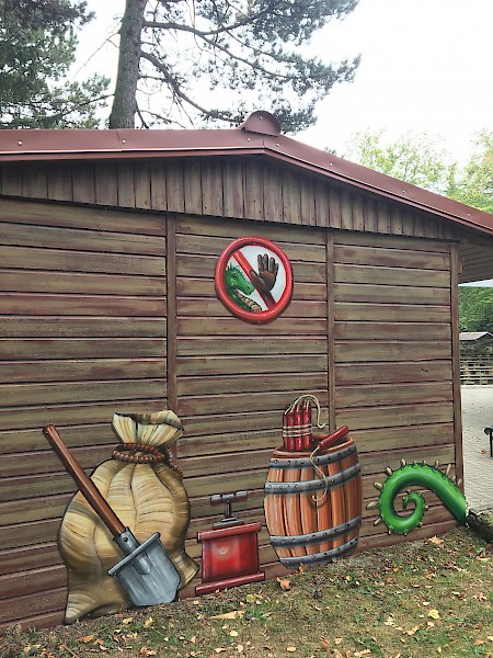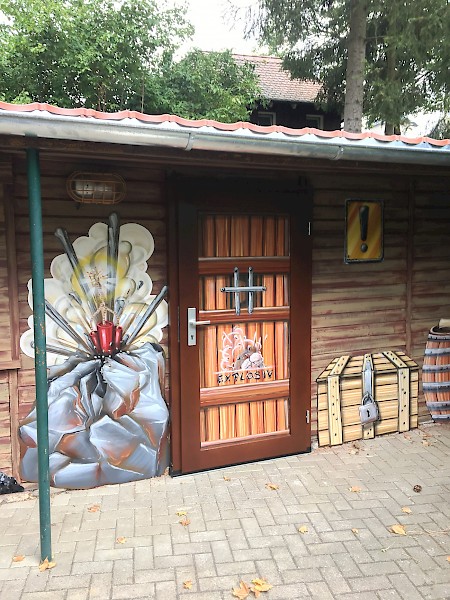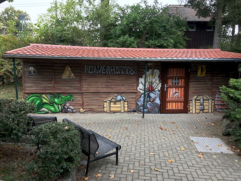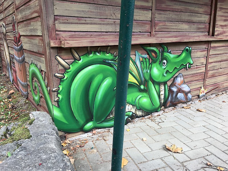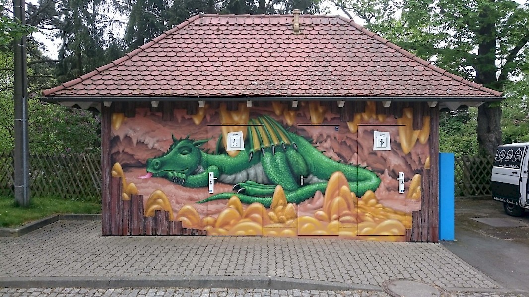 Gestaltung des Toiletten- und Pulverhauses der Drachenhöhle Syrau mit Drachen Justus und weiteren sagenumworbenen Elementen.